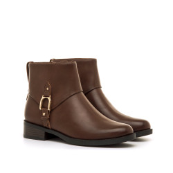 Botines marrones para mujer de Mariamare, modelo Laglio de estilo ecuestre. Con una silueta limpia y una hebilla metálica decorativa en el lateral, este botín añade un toque clásico inspirado en la equitación. Incorpora cremallera lateral dorada para facilitar el calce y un tirador trasero que mejora su funcionalidad. El tacón bajo y ancho ofrece comodidad durante todo el día, ideal para combinar con prendas ajustadas o vestidos midi en climas frescos. Un básico versátil con aire tradicional.