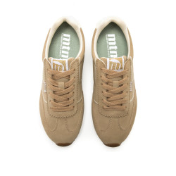 Zapatillas de color beige para mujer de la marca Mtng, modelo Janet, con diseño casual inspirado en el estilo retro. Cuentan con detalles de pespuntes decorativos en blanco y suela plana con acabado dentado caramelo, que aportan un look dinámico. El talón incluye una pieza blanca con el número 1967 grabado, haciendo referencia al año de creación de la marca, y el logo Mtng destaca en la lengüeta. Equipadas con plantillas con tecnología Starfit, que mejoran la comodidad en cada paso. Con certificado VEGANO sellado por INESCOP, el cual garantiza que la naturaleza química principal del material no se corresponde con fibras de origen animal.
