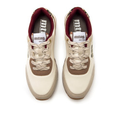 Zapatillas de color beige para mujer de la marca Mtng, modelo Joggo Classic de estilo casual. Este diseño combina tonos neutros con detalles en marrón, verde, burdeos y un original estampado animal print de leopardo en la parte trasera. La suela con acabado dentado y las plantillas que incorporan con tecnología Starfit, ofrecen mayor confort en cada pisada. Con certificado VEGANO sellado por INESCOP, el cual garantiza que la naturaleza química principal del material no se corresponde con fibras de origen animal.