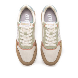 Zapatillas casual para mujer de Mtng, modelo Joggo Classicde color blanco con paneles en tonos suaves como verde pastel, rosa, beige y azul claro que aportan un look fresco y desenfadado. El logo lateral bordado en lila y la suela con acabado dentado refuerzan su inspiración retro deportiva. Equipadas con plantillas con tecnología Starfit, que mejoran la comodidad en cada paso. Con certificado VEGANO sellado por INESCOP, el cual garantiza que la naturaleza química principal del material no se corresponde con fibras de origen animal.