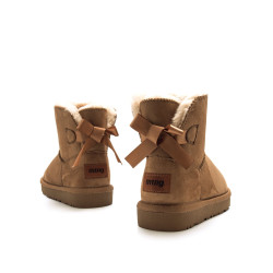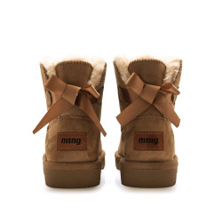 Botín de pelo para niña modelo Sky de MTNG de color cuero. Este botín estilo apreski destaca por su interior forrado en pelo suave que aporta una agradable sensación térmica. Su diseño liso con costuras marcadas y detalle de lazo trasero le da un toque infantil y actual, ideal para el invierno. La suela plana favorece un uso cómodo y seguro, perfecto para el día a día escolar o para momentos de ocio. El logo trasero cosido refuerza el carácter de la marca y completa su aspecto desenfadado y funcional.