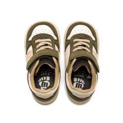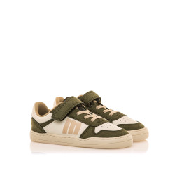 Zapatillas Free de mtng de color verde kaki con detalles beige, diseñadas para niño. Su cierre combinado de cordones elásticos y tira adherente permite un ajuste práctico y rápido. El diseño sport con logo lateral en contraste y suela en tono claro aportan un toque retro y versátil ideal para combinar con distintos looks. Diseñado y desarrollado especialmente en colaboración con el Dr. Juanjo López, traumatólogo deportivo e infantil, para respetar el desarrollo natural del pie del niño y la niña. Gracias a su puntera ancha permite el libre movimiento de los dedos dentro del zapato. Las plantillas extraíbles facilitan comprobar si la talla del calzado es la correcta para tu hijo. Además, su fácil apertura facilita que el niño pueda descalzarse y calzarse de forma autónoma. Con certificado VEGANO sellado por INESCOP, el cual garantiza que la naturaleza química principal del material no se corresponde con fibras de origen animal.