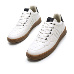 Zapatillas para hombre de MTNG, modelo Miami de color blanco. Destacan por su suela en tono caramelo, que contrasta con el corte blanco y el talón en negro. El logo lateral en relieve y los ojales metálicos refuerzan su estética deportiva. Una opción versátil y cómoda para el día a día, perfecta para quienes buscan un calzado casual con un toque moderno y funcional.Incorporan una plantilla de 4 mm con tecnología Starfit, estas zapatillas ofrecen una pisada suave y cómoda. Su espuma Comfort Foam aporta un acolchado extra, ideal para disfrutar de un confort prolongado en cada uso.