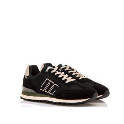 Zapatillas negras para hombre de MTNG modelo Joggo Track, de estilo retro running. El diseño combina una base en negro con detalles en crema que aportan contraste y un aire vintage. La suela dentada bicolor verde y beige garantiza buen agarre, mientras que los detalles grises en el talón completan un look deportivo con esencia urbana. Incorporan una plantilla de 4 mm con tecnología Starfit, estas zapatillas ofrecen una pisada suave y cómoda. Su espuma Comfort Foam aporta un acolchado extra, ideal para disfrutar de un confort prolongado en cada uso.