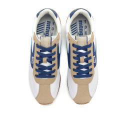 Zapatillas blancas para hombre de la marca Mtng, modelo Omega. Estas zapatillas destacan por su diseño deportivo y casual. Combinan detalles en tonos azul y arena que aportan un toque fresco y versátil a cualquier conjunto. La suela de goma ofrece buena tracción, mientras que los cordones en color azul le añaden un contraste atractivo. Incorporan una plantilla de 4 mm con tecnología Starfit, estas zapatillas ofrecen una pisada suave y cómoda. Su espuma Comfort Foam aporta un acolchado extra, ideal para disfrutar de un confort prolongado en cada uso.