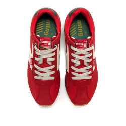 Zapatillas Mtng de color rojo para hombre, modelo Omega de estilo vintage. Con un diseño retro que combina un panel gris lateral y un detalle verde en el talón con la inscripción '1967' en homenaje a los orígenes de la marca. La suela de triple color blanca, verde y caramelo dentada garantiza buen agarre y comodidad. Ideales para combinar con vaqueros o pantalones chinos. Incorporan una plantilla de 4 mm con tecnología Starfit, estas zapatillas ofrecen una pisada suave y cómoda. Su espuma Comfort Foam aporta un acolchado extra, ideal para disfrutar de un confort prolongado en cada uso.