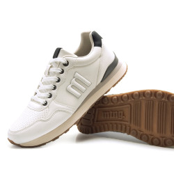 Zapatillas de color blanco para hombre de la marca mtng, modelo Porland Classic de estilo casual. Diseñada para el uso diario, su parte superior microperforada favorece la ventilación, mientras que el cuello acolchado garantiza un ajuste cómodo. El contraste del talón y la suela en tonos gris y azul marino aporta un toque moderno y dinámico. Incorporan una plantilla extraíble con tecnología Starfit y diseño termoconformado, que se adapta perfectamente al contorno del pie para ofrecer un soporte óptimo. Gracias a la espuma Comfort Foam, garantizan una amortiguación excepcional y comodidad durante todo el día.