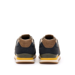 Zapatillas de color azul para hombre de la marca Mtng, modelo Porland, estilo retro running. Este modelo combina diferentes texturas en el exterior y detalles en contraste en marrón, verde y amarillo que le aportan un aire deportivo y versátil. El logotipo lateral en relieve y los cordones bicolor refuerzan su personalidad, mientras que la suela tipo plataforma con acabado dentado en color caramelo añade un toque distintivo. Equipadas con plantillas con tecnología Starfit, que mejoran la comodidad en cada paso. Con certificado VEGANO sellado por INESCOP, el cual garantiza que la naturaleza química principal del material no se corresponde con fibras de origen animal.
