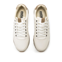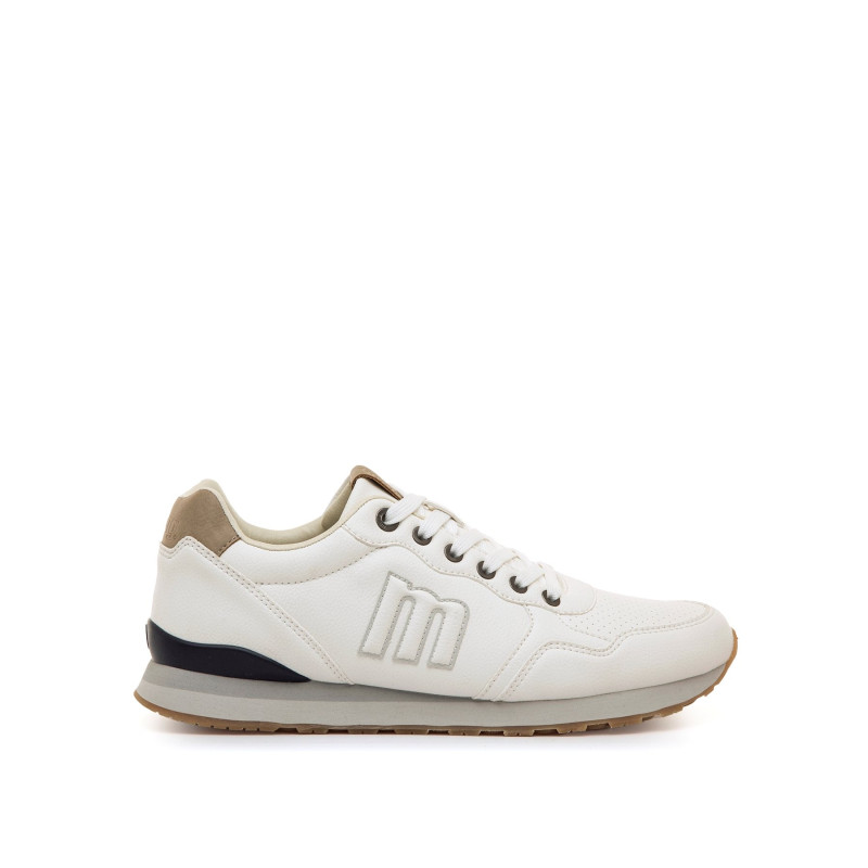 Zapatillas de color blanco para hombre de la marca Mtng, modelo Porland de estilo running clásico. Su diseño limpio con puntera perforada y detalles en beige, gris y azul combinan con facilidad en looks informales. El logo lateral y el talón contrastado refuerzan su carácter retro. Su suela de goma dentada y sus plantillas con tecnología Starfit, mejoran la comodidad en cada paso. Con certificado VEGANO sellado por INESCOP, el cual garantiza que la naturaleza química principal del material no se corresponde con fibras de origen animal.