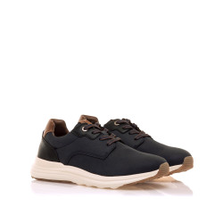 Zapatos de color azul marino para hombre, modelo Tady de Mtng. Su exterior combina tonos oscuros con detalles en contraste en el talón y los cordones, aportando un toque moderno. La suela ligera y flexible ofrece una gran comodidad y amortiguación en cada paso. Incorporan una plantilla extraíble con tecnología Starfit y diseño termoconformado, que se adapta perfectamente al contorno del pie para ofrecer un soporte óptimo. Gracias a la espuma Comfort Foam, garantizan una amortiguación excepcional y comodidad durante todo el día. Un calzado versátil y funcional, ideal para quienes buscan estilo y confort en un diseño actual.
