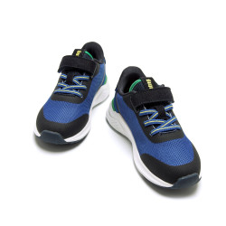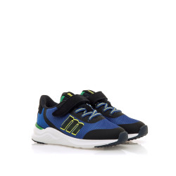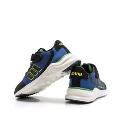 Zapatillas de color azul para niño modelo Somo Evo de MTNG. Perfecta para el día a día o para actividades con mucho movimiento, esta zapatilla presenta un diseño deportivo con detalles llamativos en verde, amarillo y negro. Incorpora cordones elásticos y cierre adhesivo para un ajuste rápido y seguro, mientras que la suela gruesa de color blanco aporta un plus de amortiguación y estabilidad. Su estructura ligera y el tejido transpirable hacen de este modelo una opción práctica y cómoda para los más pequeños.