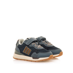 Zapatilla de color azul para niño modelo Compact de MTNG, estilo deportivo. Con adhesivo y cordones elásticos, garantizan un ajuste cómodo y práctico para los pequeños. Su diseño en malla y refuerzos sintéticos añade durabilidad y ventilación, mientras que la suela bicolor de goma mejora la tracción en cada paso. El logo lateral en contraste aporta un toque distintivo en tono marrón. Ideales para acompañarlos en cualquier plan con comodidad y estilo.