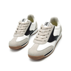 Zapatilla de color blanco y gris para niño, modelo Olympic de MTNG estilo retro running. Presenta una estructura ligera con cierre mediante cordones y detalles en negro que destacan sobre la base clara. La suela de goma tono caramelo ofrece buen agarre, mientras que la lengüeta y el talón acolchados aportan comodidad en cada paso. Ideal para el día a día gracias a su versatilidad y estilo atemporal. Con certificado VEGANO sellado por INESCOP, el cual garantiza que la naturaleza química principal del material no se corresponde con fibras de origen animal.