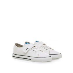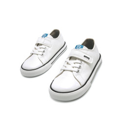 Zapatilla de color blanco para niño modelo Free de MTNG. Su estilo casual y su sistema de cierre adhesivo con cordones elásticos facilita el calce autónomo. El diseño tipo polipiel con suela de goma aporta un estilo urbano y versátil, fácil de combinar con cualquier conjunto. Diseñado y desarrollado especialmente en colaboración con el Dr. Juanjo López, traumatólogo deportivo e infantil, para respetar el desarrollo natural del pie del niño y la niña. Gracias a su puntera ancha permite el libre movimiento de los dedos dentro del zapato. Las plantillas extraíbles facilitan comprobar si la talla del calzado es la correcta para tu hijo. Además, su fácil apertura facilita que el niño pueda descalzarse y calzarse de forma autónoma. Con certificado VEGANO sellado por INESCOP, el cual garantiza que la naturaleza química principal del material no se corresponde con fibras de origen animal.