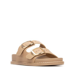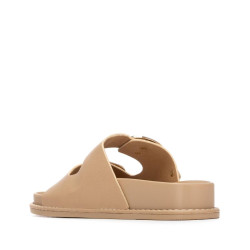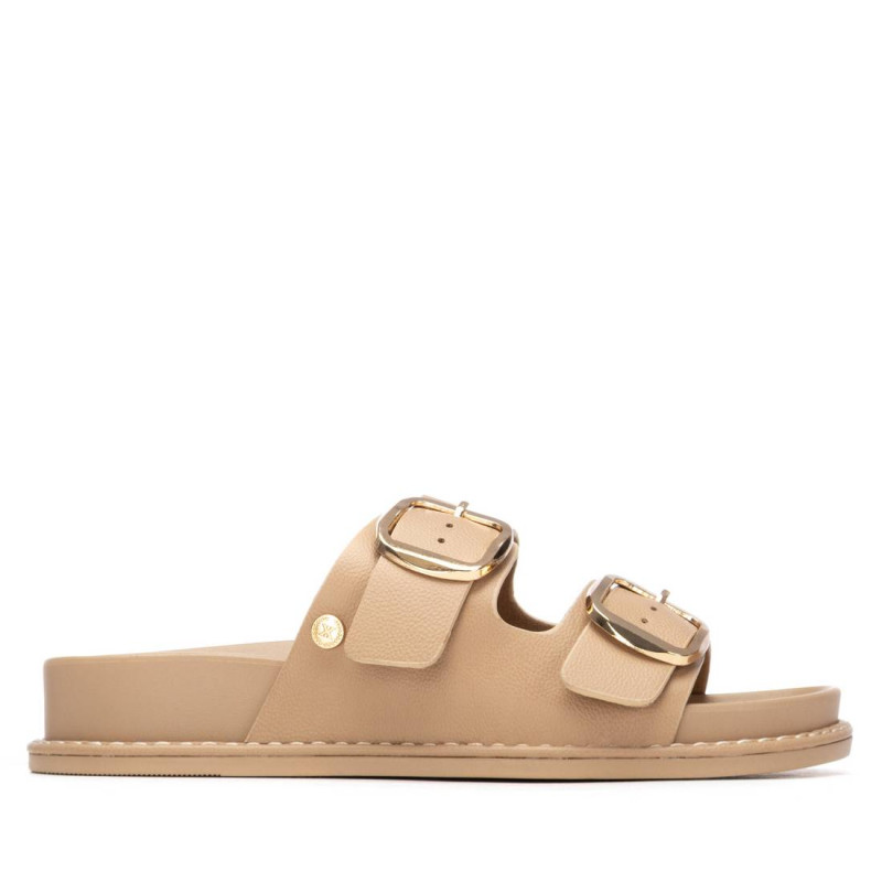 Sandalia de mujer, de la marca Xti Basic. Fabricada en material que imita la piel, con diseño de doble tira con hebillas que aseguran un ajuste perfecto. Es plana y cómoda, con una suela tipo bio que favorece una pisada natural y confortable. Ideal para un look casual con estilo y funcionalidad.