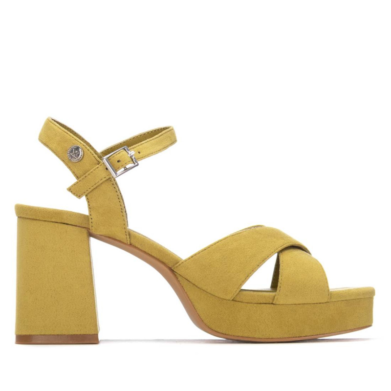 Sandalia de mujer, de la marca Xti Basic. Fabricada en suave material, esta sandalia presenta un diseño de pala cruzada que aporta elegancia y estilo, acompañado de una pulsera con hebilla que sujeta cómodamente al tobillo. Incorpora un tacón ancho con plataforma delantera, lo que proporciona altura sin renunciar al confort. Un modelo versátil y femenino, ideal para lucir en los días de buen tiempo, tanto en looks de día como de noche.