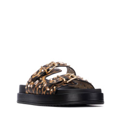Sandalia de mujer, de la marca Xti Basic. Fabricada en material que imita la piel, presenta un bonito diseño de doble pala con hebillas, que aportan un estilo moderno y sofisticado. Incluye tachas metálicas, que realzan el acabado del modelo. La suela bio proporciona mayor comodidad y adaptación al pie, ideal para el uso diario. Además, cuenta con suela antideslizante, para mayor seguridad en cada paso.