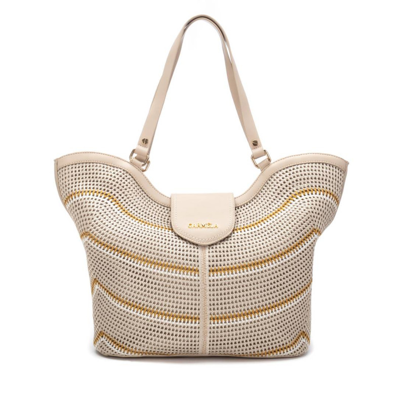 Bolso de hombro para mujer de la marca Carmela, confeccionado en textil, una mezcla perfecta para este verano. Incorpora cierre mediante cremallera i para mayor seguridad. Su diseño práctico y elegante lo convierte en un accesorio ideal para el día a día. Medidas: 28 x 45 x 15 cm. .Este modelo ha obtenido el certificado vegano por la organización mundial PETA (Organización de los derechos de los animales).