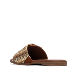 Sandalia de mujer, de la marca Refresh. Fabricada en material que imita a la piel combinada con rafia. Hebilla a contraste. Con suela de goma antideslizante. Este modelo ha obtenido el certificado vegano por la organización mundial PETA (Organización de los derechos de los animales).