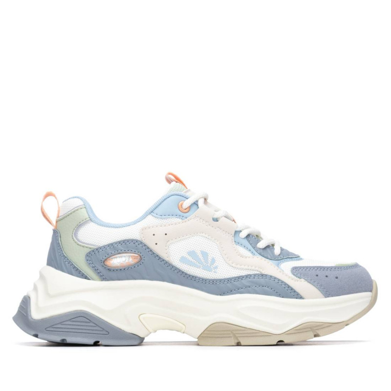 Zapatilla de mujer, estilo urbano. Marca Refresh. Fabricado en material que imita a la piel combinado con tejido técnico. Tirador trasero y delantero para facilitar la puesta. Cordón regulable. Gruesa suela estilo chunky de goma. Este modelo ha obtenido el certificado vegano por la organización mundial PETA (Organización de los derechos de los animales).