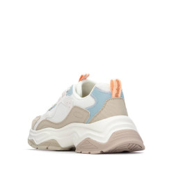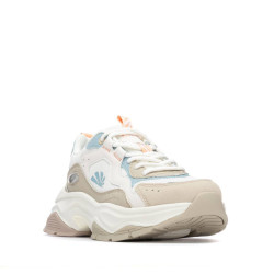 Zapatilla de mujer, estilo urbano. Marca Refresh. Fabricado en material que imita a la piel combinado con tejido técnico. Tirador trasero y delantero para facilitar la puesta. Cordón regulable. Gruesa suela estilo chunky de goma. Este modelo ha obtenido el certificado vegano por la organización mundial PETA (Organización de los derechos de los animales).