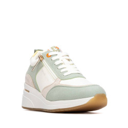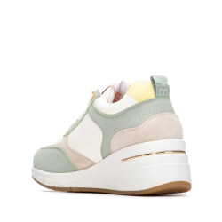 Zapatilla de mujer, de la marca Refresh. Fabricado en material que imita a la piel combinado con antelina. Cierre mediante cremallera lateral. Cordones blanco regulables para un mejor ajuste. Cómoda cuña con suela de goma a contraste. Este modelo ha obtenido el certificado vegano por la organización mundial PETA (Organización de los derechos de los animales).