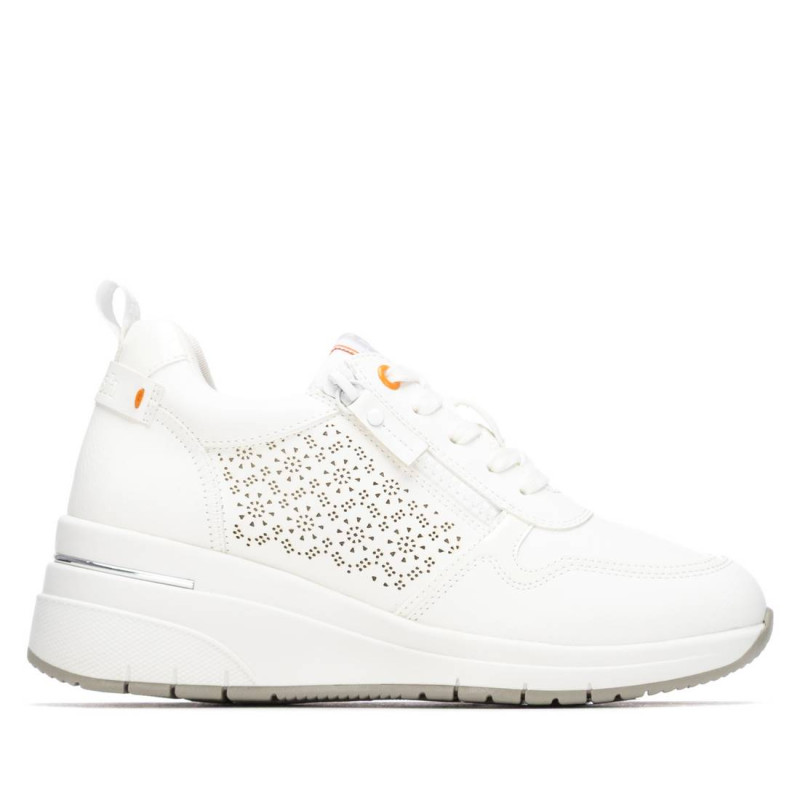 Zapatilla de mujer, de la marca Refresh. Fabricada en material que imita a la piel con troquel decorativo en el lateral. Cierre de cremallera lateral con cordón regulable para un mejor ajuste. Tirador trasero. Piso tipo cuña de goma. Este modelo ha obtenido el certificado vegano por la organización mundial PETA (Organización de los derechos de los animales).
