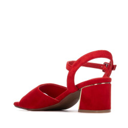 Sandalia de mujer, de la marca Refresh. Fabricada suave antelina. Pala y pulsera trasera con hebilla para sujetar al tobillo. Cómoda planta acolchada. Tacón forrado en el mismo material que el corte con pieza metaliza decorativa. Este modelo ha obtenido el certificado vegano por la organización mundial PETA (Organización de los derechos de los animales).