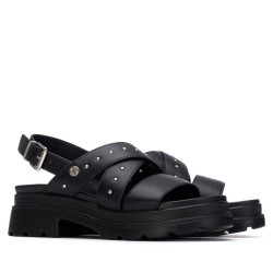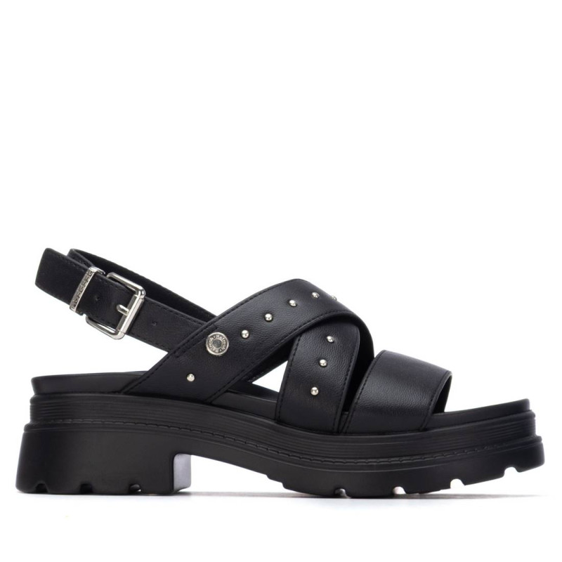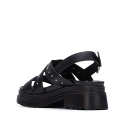 Sandalia de mujer, de la marca Refresh. Fabricada en material que imita a la piel. Tiras decoradas con tachuelas. Pulsera trasera con hebilla para ajustar al tobillo. Suela de goma. Este modelo ha obtenido el certificado vegano por la organización mundial PETA (Organización de los derechos de los animales).