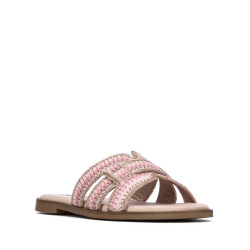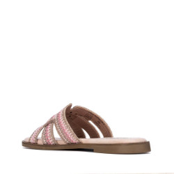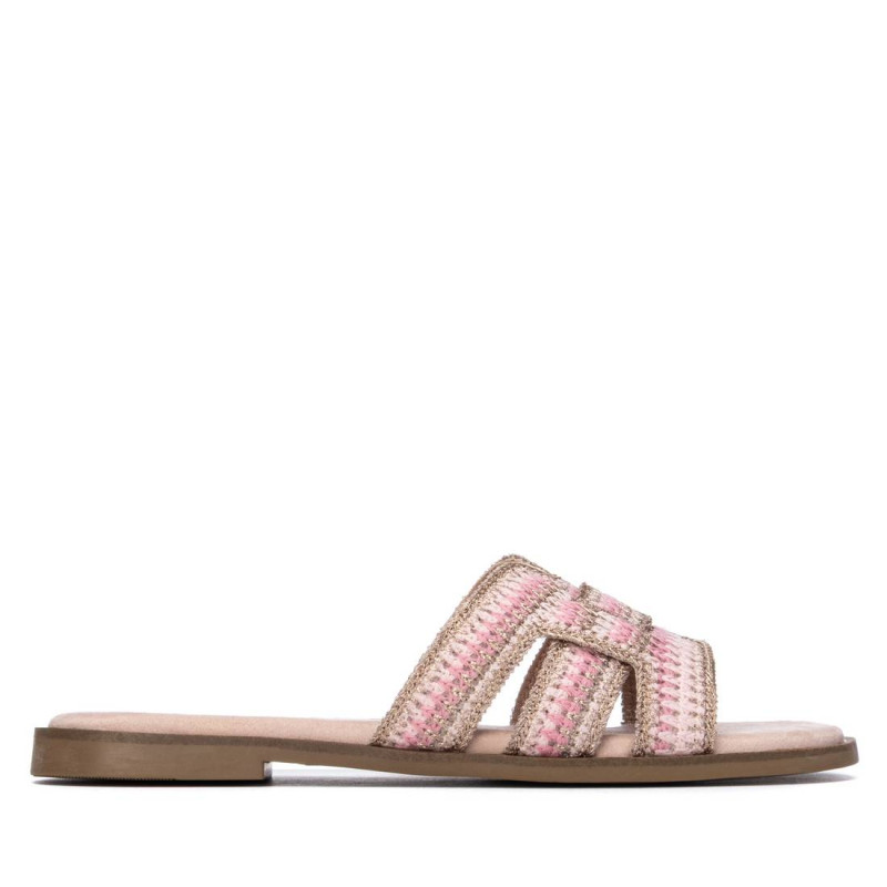 Sandalia destalonada de mujer, marca Refresh. Diseño entrecruzado en textil con acabado artesanal y detalles metálicos sutiles. Plantilla acolchada para mayor comodidad y suela de goma. Ideal para un look casual y fresco en días cálidos. Fácil de combinar con todos tus looks. Este modelo ha obtenido el certificado vegano por la organización mundial PETA (Organización de los derechos de los animales).