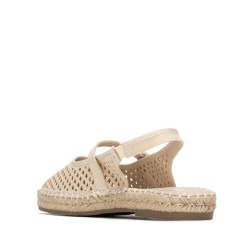 Zapato destalonado de mujer, de la marca Refresh. Fabricado en suave antelina troquelada. Cómoda planta. Piso con tira de yute trenzado. Suela de goma. Este modelo ha obtenido el certificado vegano por la organización mundial PETA (Organización de los derechos de los animales).