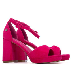 Sandalia de mujer, marca Refresh. Fabricada en suave antelina. Sandalia con talón y pulsera al tobillo con hebilla forrada y detalle metálico lateral. Con tacón de bloque y plataforma delantera para mayor confort. Cómoda y elegante, ideal para tus looks de verano. Este modelo ha obtenido el certificado vegano por la organización mundial PETA (Organización de los derechos de los animales).