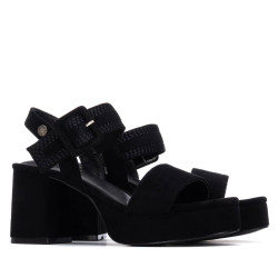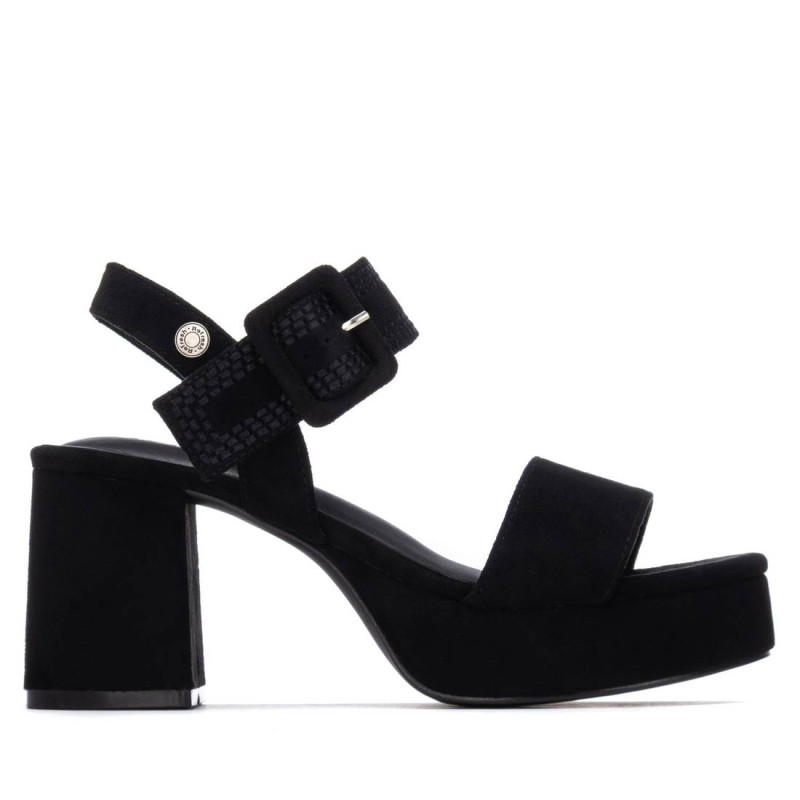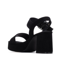 Sandalia de la marca Refresh. Fabricada en antelina. Diseño de pala estrecha con pulsera trasera con correa ancha y hebilla forrada con el mismo material del corte. Tacón del mismo material con plataforma para mayor confort. Este modelo ha obtenido el certificado vegano por la organización mundial PETA (Organización de los derechos de los animales).