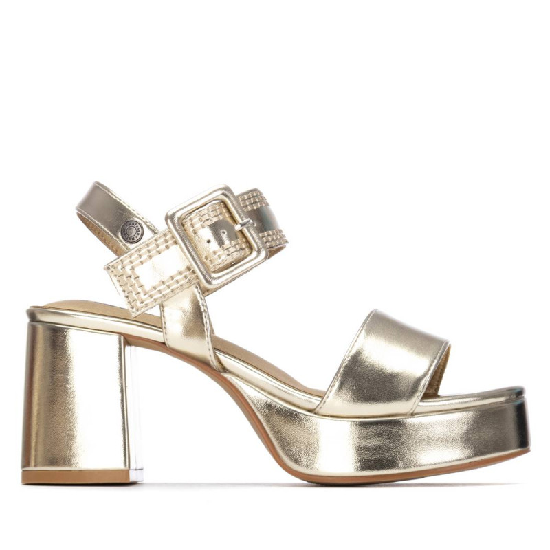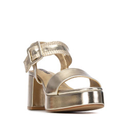 Sandalia de la marca Refresh. Fabricada en antelina. Diseño de pala estrecha con pulsera trasera con correa ancha y hebilla forrada con el mismo material del corte. Tacón del mismo material con plataforma para mayor confort. Este modelo ha obtenido el certificado vegano por la organización mundial PETA (Organización de los derechos de los animales).