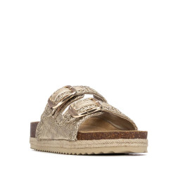 Sandalia de mujer, de la marca Xti. Fabricada en material que imita la piel, con un bonito diseño entrelazado que recorre todo el modelo, aportando un estilo artesanal y actual. Presenta doble tira con hebilla para un ajuste cómodo y personalizado. La suela plana tipo bio, combinada con detalles en yute, añade un sutil volumen que estiliza sin renunciar al confort. La base está diseñada para ofrecer estabilidad y sujeción en cada paso.