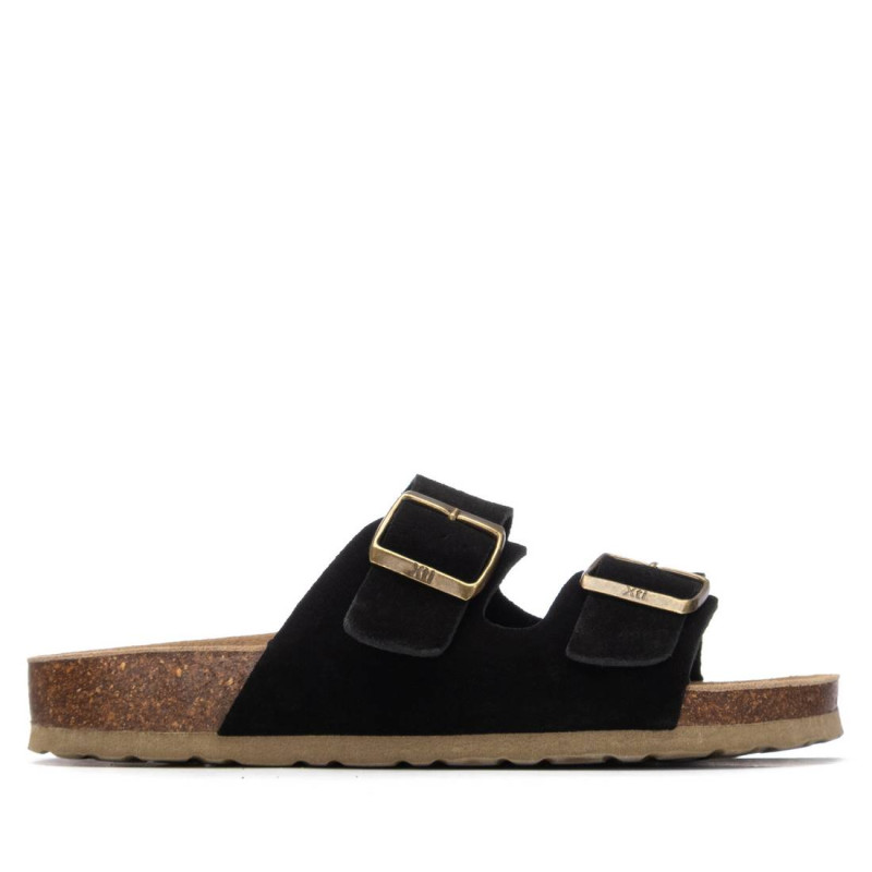 Sandalia de mujer, de la marca Xti. Fabricada en piel, con un diseño plano de doble tira con hebillas que aporta estilo y ajuste personalizado. Cuenta con una suela tipo bio, que ofrece comodidad y soporte natural para el pie. Además, incorpora una base diseñada para asegurar una pisada estable y segura.