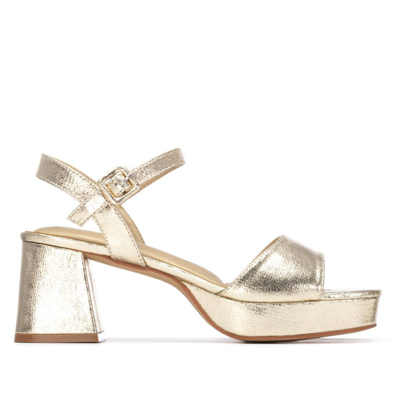 Sandalia de mujer, de la marca Xti. Fabricada en material que imita la piel, con diseño de pala y pulsera trasera que ajusta al tobillo, garantizando un buen ajuste y comodidad. Cuenta con un tacón ancho con plataforma, que aporta estabilidad y estilo contemporáneo. Ideal para looks veraniegos que combinan elegancia y confort. Además, dispone de suela antideslizante para mayor seguridad en cada paso.