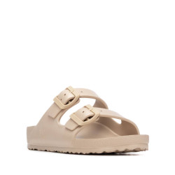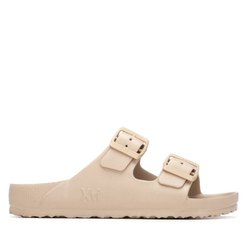 Sandalia de mujer, de la marca Xti. De estilo casual, ideal para los meses de verano por su diseño cómodo y ligero. Fabricada en materiales de alta calidad, presenta dos hebillas decorativas al tono, que aportan un toque moderno sin perder sencillez. Perfecta para looks relajados y frescos. Cuenta con suela antideslizante, para mayor seguridad en cada paso. Este modelo ha obtenido el certificado vegano por la organización mundial PETA (Organización de los derechos de los animales).