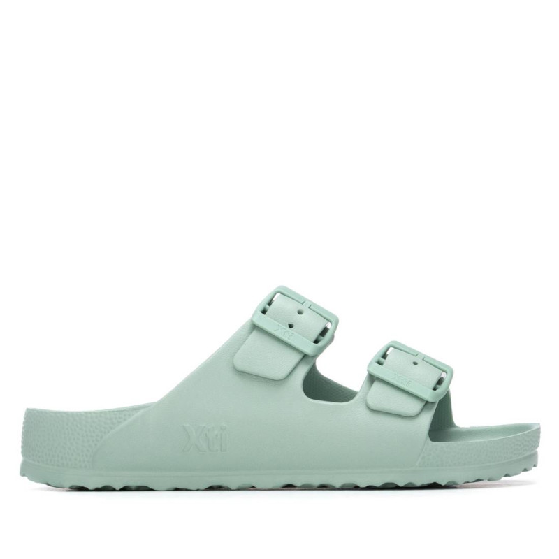 Sandalia de mujer, de la marca Xti. De estilo casual, ideal para los meses de verano por su diseño cómodo y ligero. Fabricada en materiales de alta calidad, presenta dos hebillas decorativas al tono, que aportan un toque moderno sin perder sencillez. Perfecta para looks relajados y frescos. Cuenta con suela antideslizante, para mayor seguridad en cada paso. Este modelo ha obtenido el certificado vegano por la organización mundial PETA (Organización de los derechos de los animales).