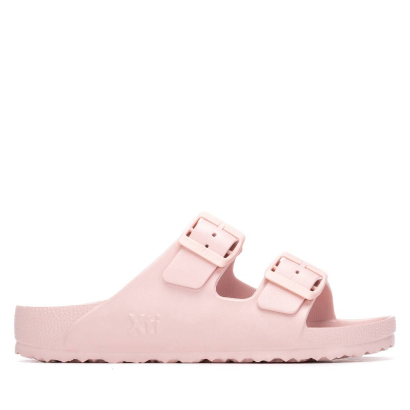 Sandalia de mujer, de la marca Xti. De estilo casual, ideal para los meses de verano por su diseño cómodo y ligero. Fabricada en materiales de alta calidad, presenta dos hebillas decorativas al tono, que aportan un toque moderno sin perder sencillez. Perfecta para looks relajados y frescos. Cuenta con suela antideslizante, para mayor seguridad en cada paso. Este modelo ha obtenido el certificado vegano por la organización mundial PETA (Organización de los derechos de los animales).