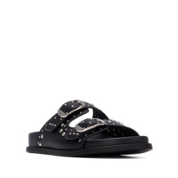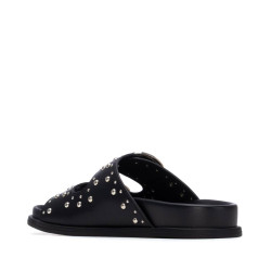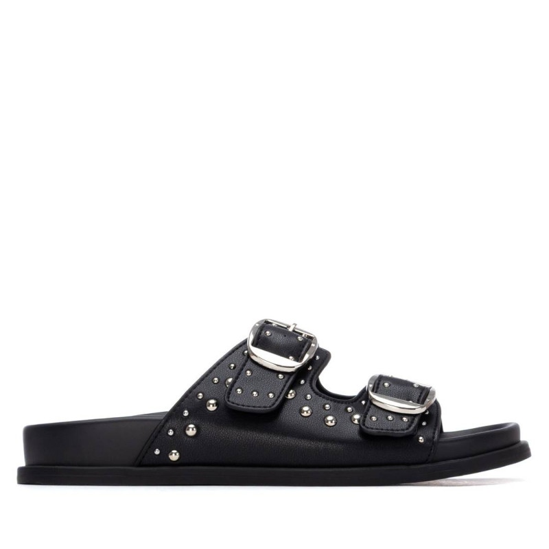 Sandalia de mujer, de la marca Xti. Fabricada en material que imita la piel, con un diseño de inspiración casual y confortable. Presenta dos tiras con hebillas metálicas ajustables, decoradas con tachuelas que aportan un toque moderno y desenfadado. Ideal para looks veraniegos cómodos y con estilo. Cuenta con suela antideslizante, para mayor seguridad en cada paso. Este modelo ha obtenido el certificado vegano por la organización mundial PETA (Organización de los derechos de los animales).