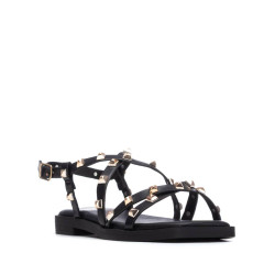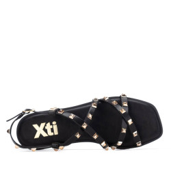 Sandalia de mujer, de la marca Xti. Fabricada en material que imita la piel, con diseño estilo romana caracterizado por múltiples tiras decoradas con tachuelas que aportan un toque moderno y sofisticado. Modelo plano, con cierre mediante hebilla al tobillo para un ajuste seguro y cómodo. Perfecta para looks veraniegos con estilo y comodidad. Cuenta con suela antideslizante, para mayor seguridad en cada paso. Este modelo ha obtenido el certificado vegano por la organización mundial PETA (Organización de los derechos de los animales).