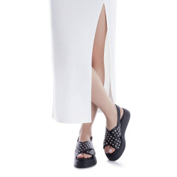 Sandalia plana de mujer, de la marca Xti. Confeccionada en material que imita la piel, esta sandalia presenta un elegante diseño de tiras cruzadas decoradas con pequeñas tachas planas, que aportan un aire moderno y ligeramente cañero al look. Su suela plana con volumen ofrece un extra de comodidad y una pisada agradable, ideal para acompañarte durante los días de más calor. El modelo incluye cierre con hebilla al tobillo que asegura buena sujeción, sin renunciar al estilo. Perfecta para quienes buscan un calzado fresco, original y cómodo para el día a día del verano.