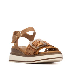 Sandalia de mujer, de la marca Xti. Fabricada en una combinación de material de rafia y material que imita la piel, este modelo presenta un diseño elegante y natural con pala ancha y pulsera que sujeta al tobillo, ofreciendo una sujeción segura y cómoda. Destaca por su cuña baja con acabado efecto madera, que aporta un toque cálido y veraniego al conjunto, perfecto para looks casuales y frescos. El detalle de la hebilla decorativa en la pala añade un plus de estilo y personalidad. Ideal para quienes buscan comodidad sin renunciar a un diseño sofisticado y actual durante la temporada de buen tiempo. Este modelo ha obtenido el certificado vegano por la organización mundial PETA (Organización de los derechos de los animales).