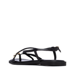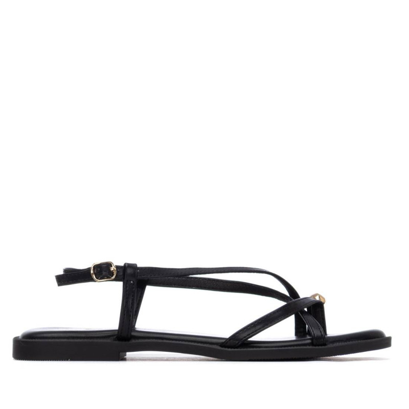 Sandalia de mujer, de la marca Xti. Fabricada en material que imita la piel, destaca por su diseño minimalista y elegante. Cuenta con una fina tira que sujeta el dedo, adornada con una delicada pieza metálica decorativa que aporta un toque de sofisticación. La pulsera al tobillo con cierre de hebilla asegura una sujeción cómoda y estable. Modelo plano con suela antideslizante, perfecto para lucir en los días cálidos con looks frescos y actuales. Este modelo ha obtenido el certificado vegano por la organización mundial PETA (Organización de los derechos de los animales).