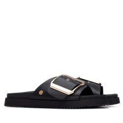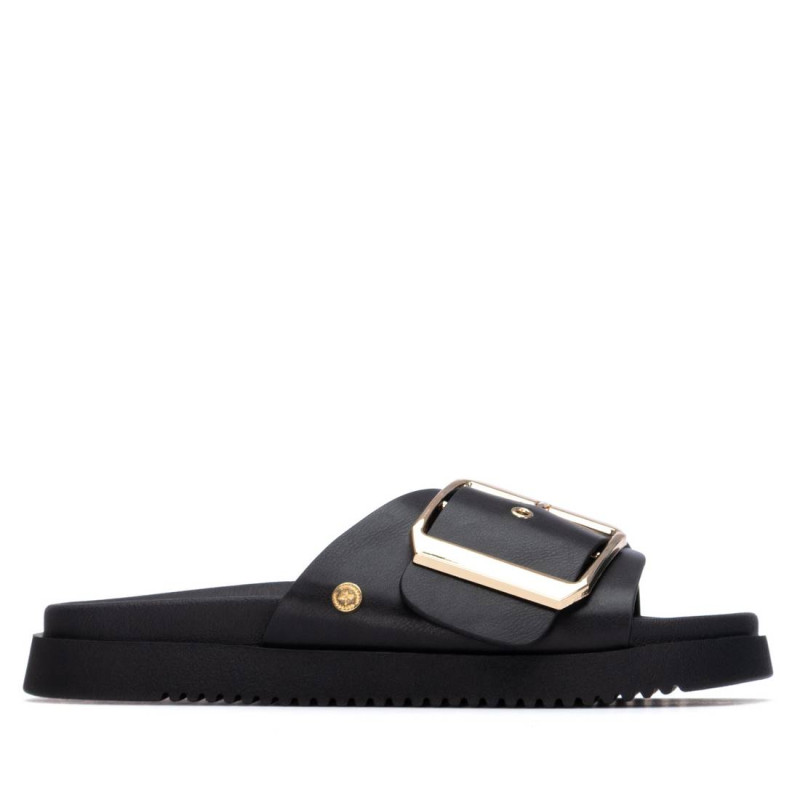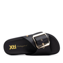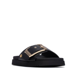 Sandalia plana, fabricada en material que imita la piel, con un diseño de pala ancha que ofrece máxima comodidad y estilo. Destaca por una gran hebilla decorativa que aporta un toque moderno y elegante. Modelo destalonado, ideal para los días cálidos, con suela bio que garantiza confort y una pisada natural. Perfecta para combinar con looks casuales y frescos.