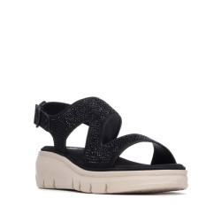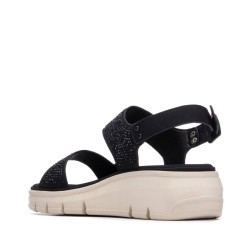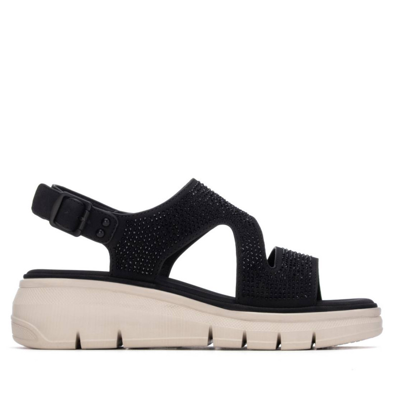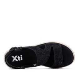 Sandalia de mujer, de la marca Xti. Fabricada en material que imita la piel, destaca por su diseño decorado con strass al tono que aporta un toque brillante y elegante. Cierre mediante hebilla lateral que asegura una buena sujeción. Incorpora una suela deportiva con una ligera cuña de 5 cm, que combina altura y confort. Un modelo cómodo, flexible y perfecto para lucir con estilo durante todo el día. Este modelo ha obtenido el certificado vegano por la organización mundial PETA (Organización de los derechos de los animales).