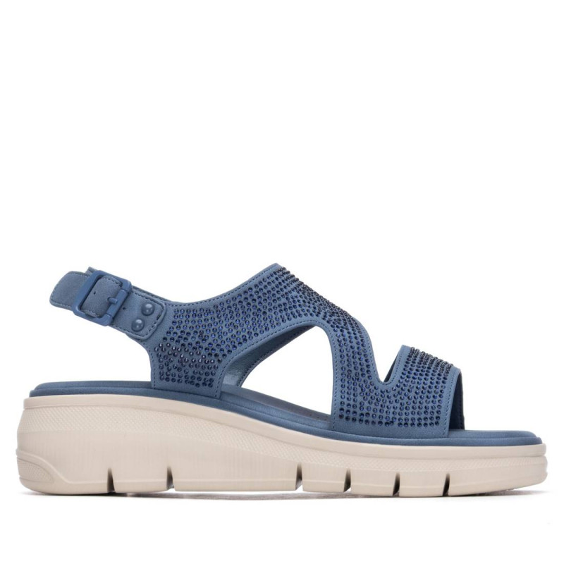 Sandalia de mujer, de la marca Xti. Fabricada en material que imita la piel, destaca por su diseño decorado con strass al tono que aporta un toque brillante y elegante. Cierre mediante hebilla lateral que asegura una buena sujeción. Incorpora una suela deportiva con una ligera cuña de 5 cm, que combina altura y confort. Un modelo cómodo, flexible y perfecto para lucir con estilo durante todo el día. Este modelo ha obtenido el certificado vegano por la organización mundial PETA (Organización de los derechos de los animales).