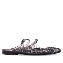 Bailarina destalonada de mujer de la marca Xti, fabricada en material de goma, ideal para los meses más cálidos del año. De estilo zueco, presenta un diseño de rejilla que permite una excelente ventilación, manteniendo el pie fresco y cómodo durante todo el día. Su silueta plana la convierte en una opción práctica y ligera para el uso diario. Cuenta con una tira en el empeine ajustable mediante hebilla, que aporta sujeción y un toque funcional al diseño. Perfecta para un look veraniego casual y cómodo. Este modelo ha obtenido el certificado vegano por la organización mundial PETA (Organización de los derechos de los animales).