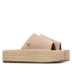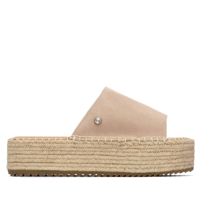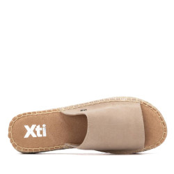 Sandalia de mujer de la marca Xti, fabricada en material que imita el serraje. Presenta un diseño de pala ancha que cubre el empeine, aportando estilo y comodidad. Modelo destalonado, ideal para los días cálidos. Suela plana forrada en yute, que añade un toque natural y veraniego al conjunto. Una opción fresca y versátil para looks informales de temporada.
